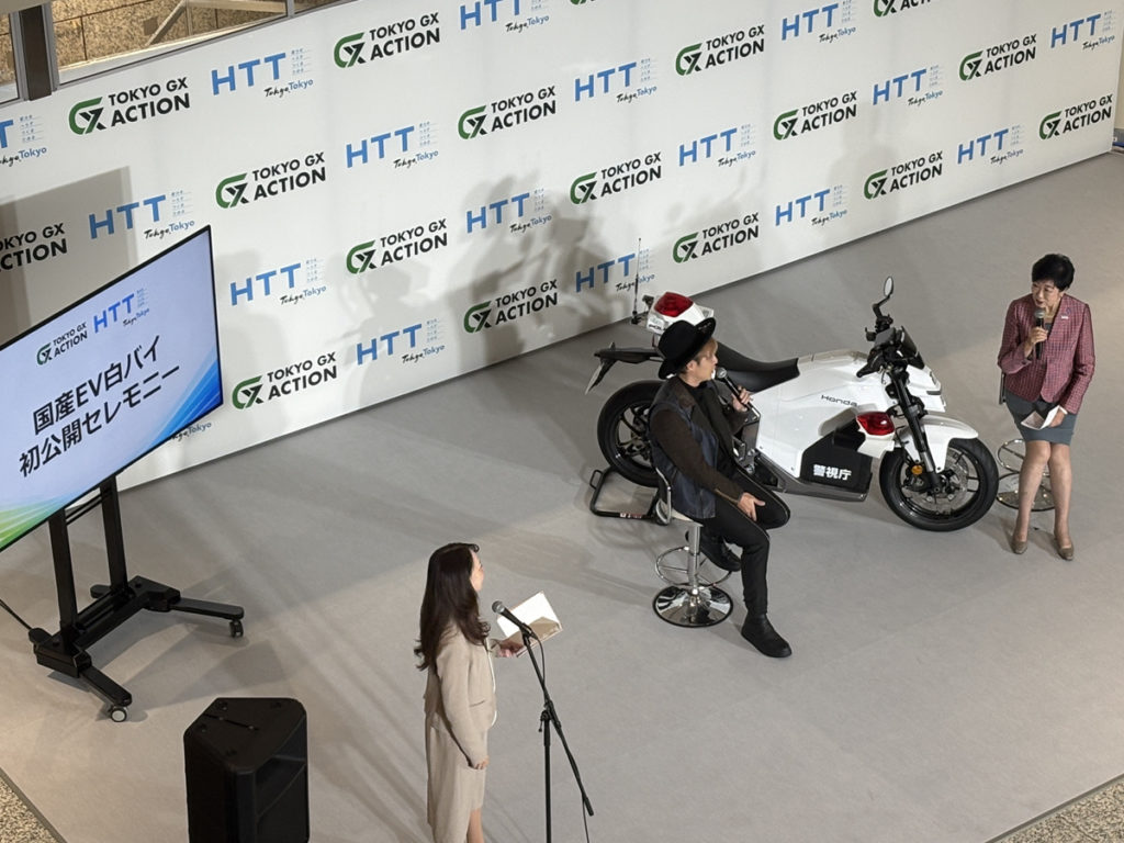 何かやるのね〜と準備中だった申請前。そして無事申請が受理された帰りに国産EV白バイの